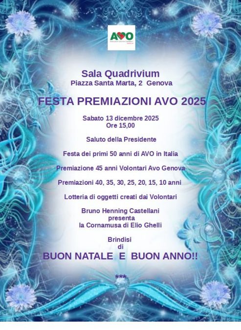 FESTA DEL VOLONTARIATO19 Ottobre 2025 FESTA DELLE PREMIAZIONI Sabato 13 dicembre festeggeremo insieme al Quadrivium. Vi aspettiamo numerosi! Condividi Post correlati19 Ottobre 2025FESTA DEL VOLONTARIATOLeggi tutto5 Ottobre 2025INTERVISTA ALL’EX PRESIDENTE JOSE TURCHETTI VADORA SUL VOLONTARIATOLeggi tutto27 Agosto 2025CORSO AVO OTTOBRE 2025Leggi tutto